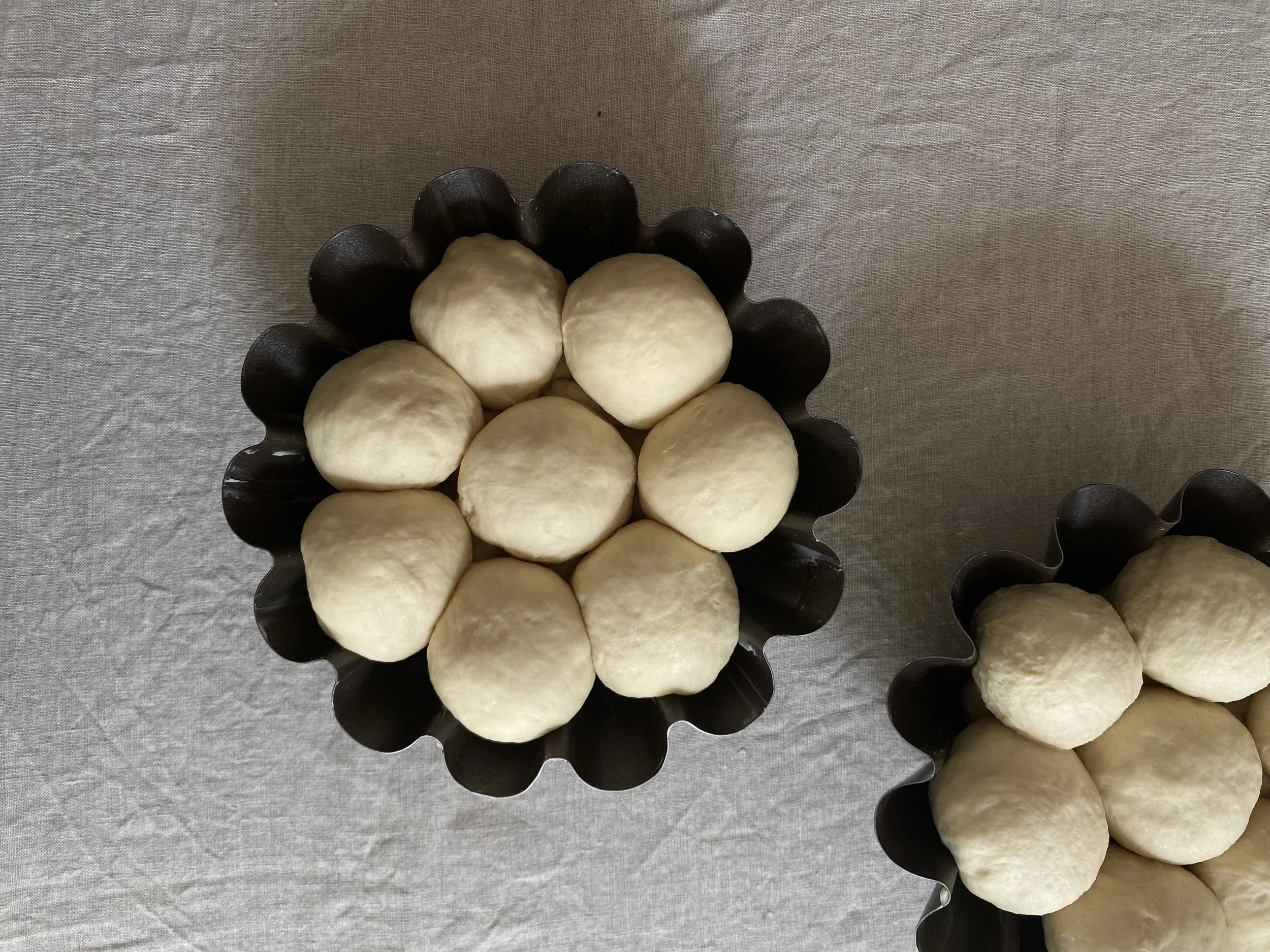 2 round brioche baking trays of 18 cm top diameter or any other round baking tray with a similar diameter size.