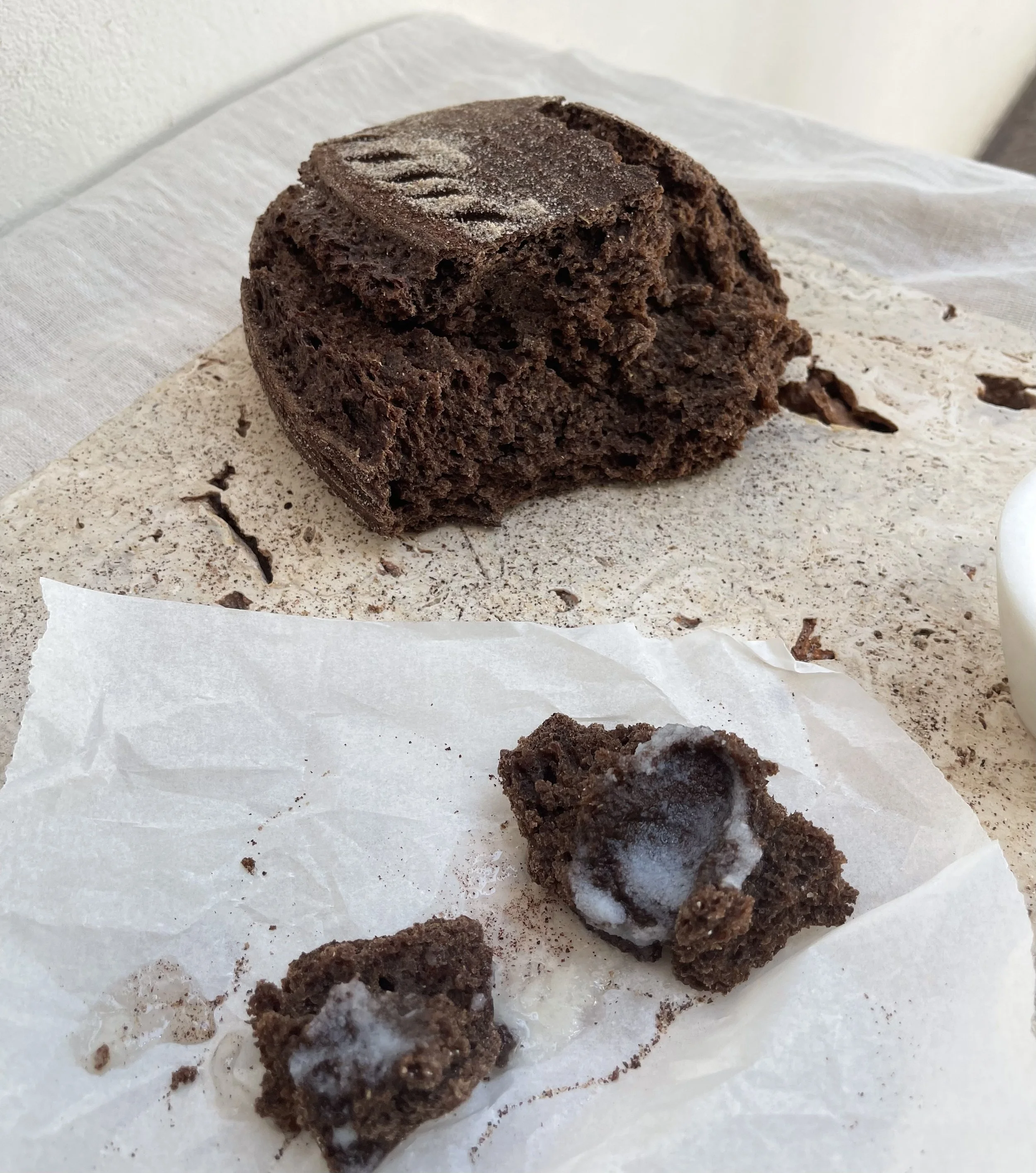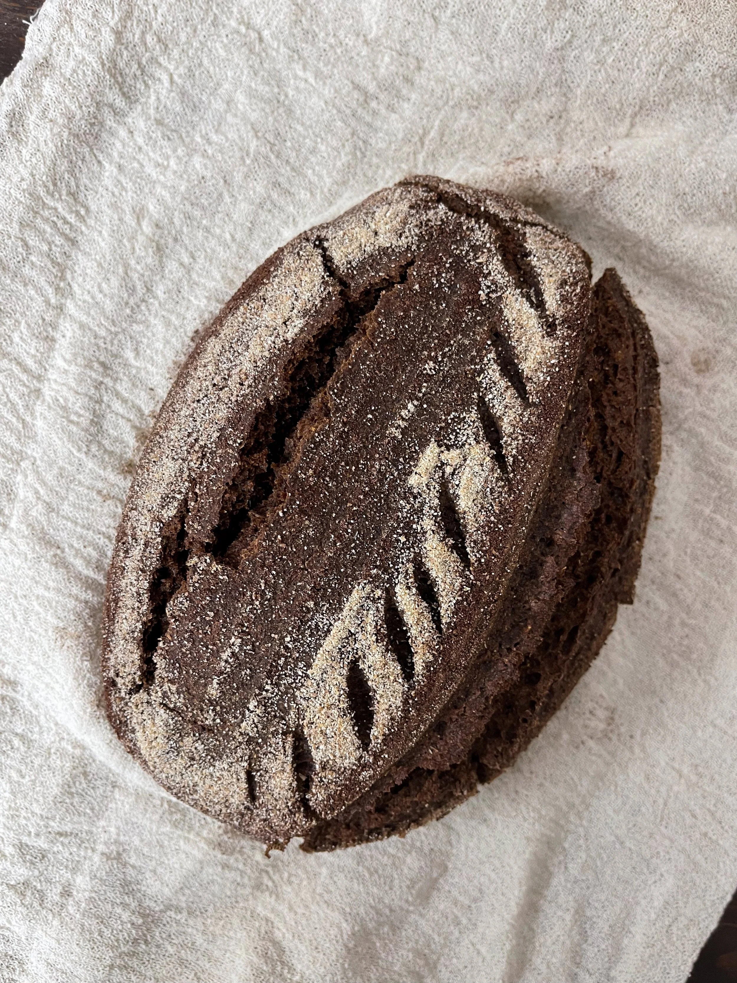 Diving deep into her flavour. It is a whole new discovery of the depth of the senses. A weaving of the ancestral essence of emmer wheat, the crunch, the flavour and the scent of sacred cacao. One of my favourite loafs so far!