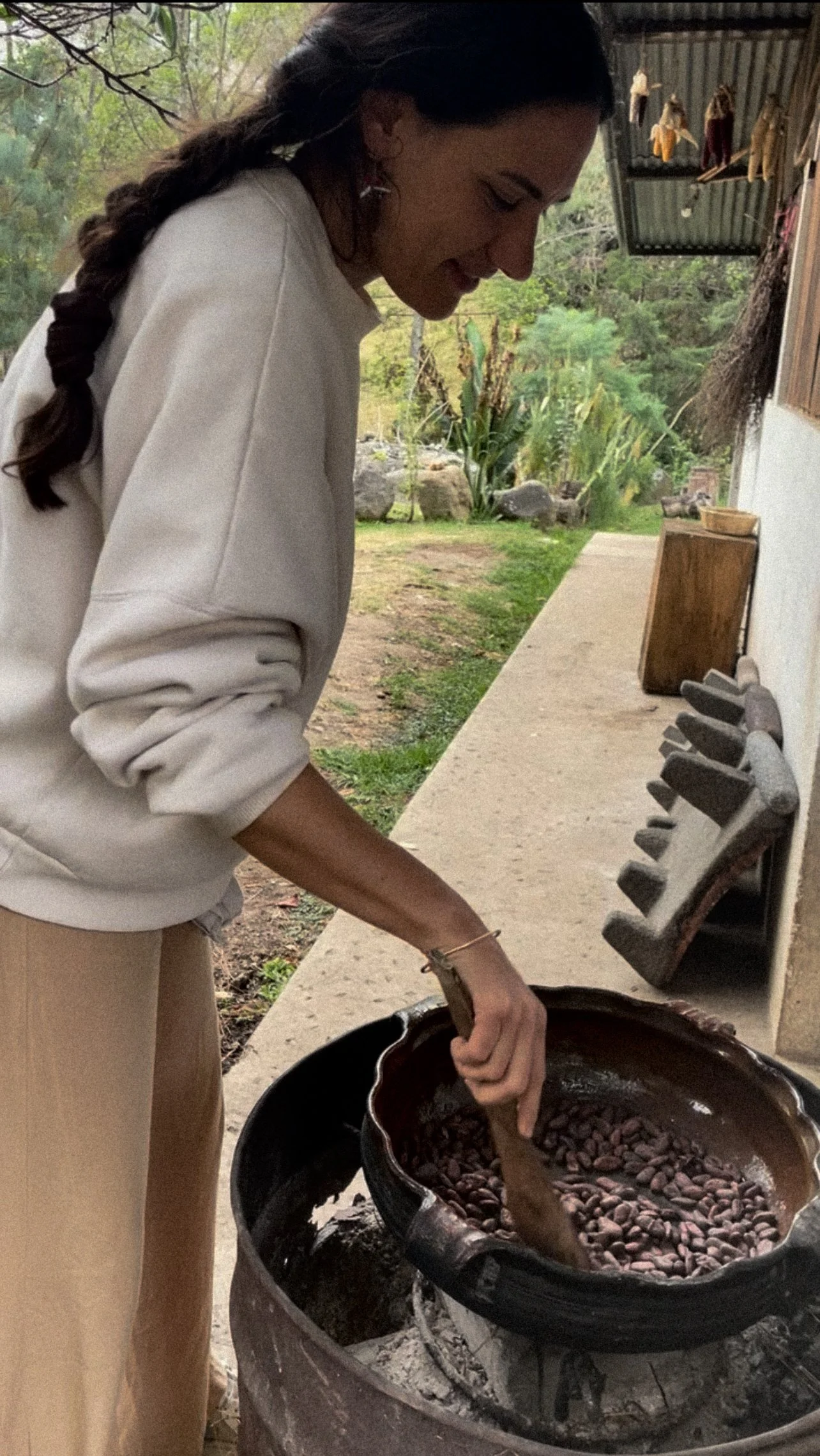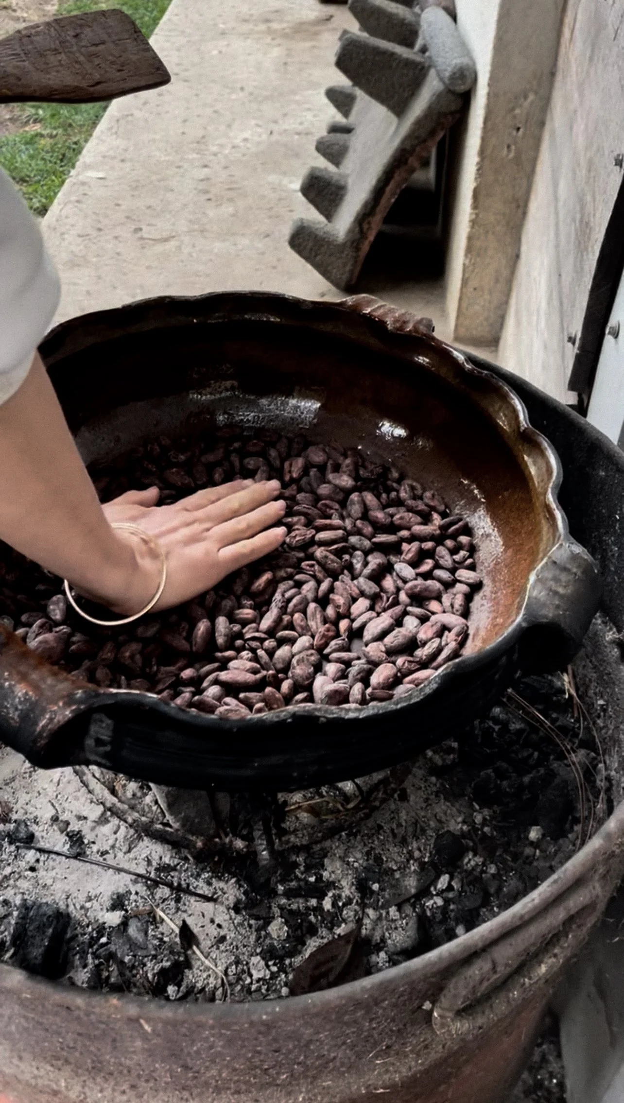 Toasting cacao beans over fire the traditional Mayan way. One of the main requirements for ancestral ceremonial grade cacao paste.